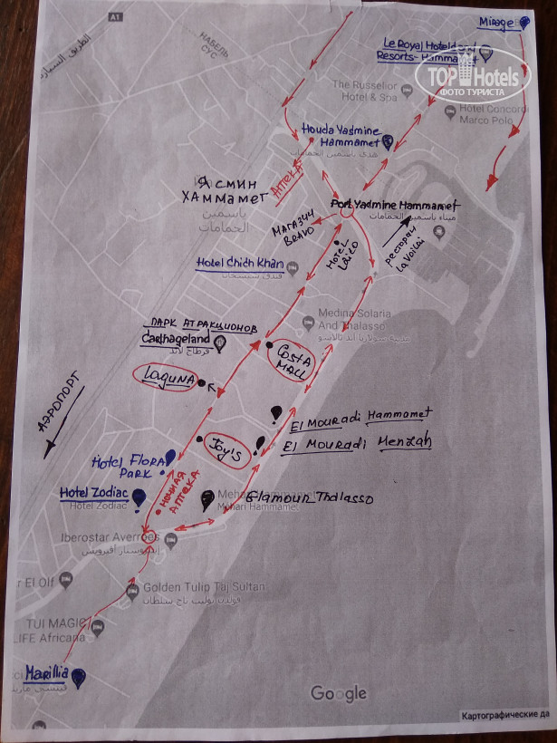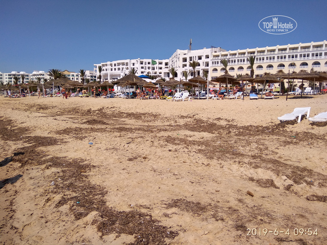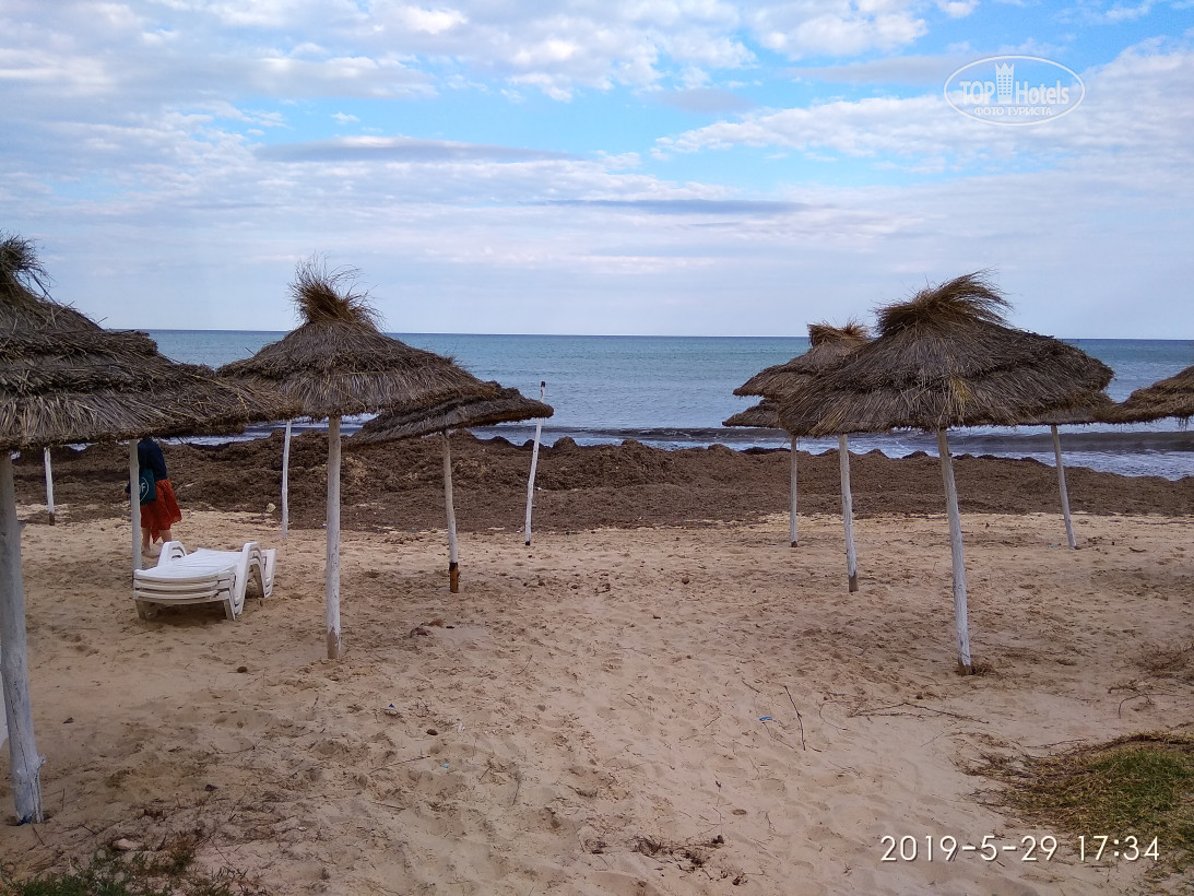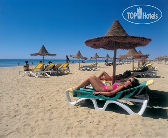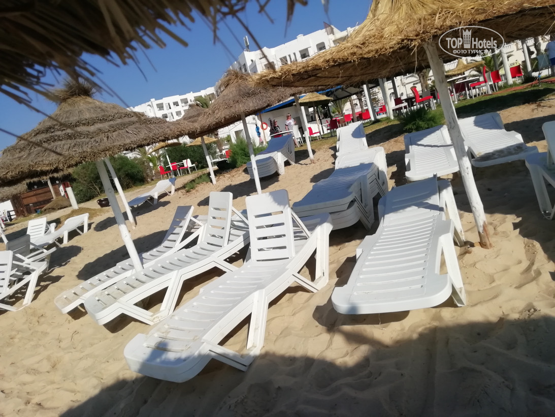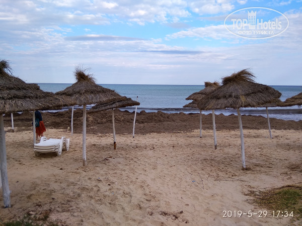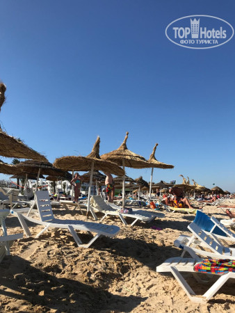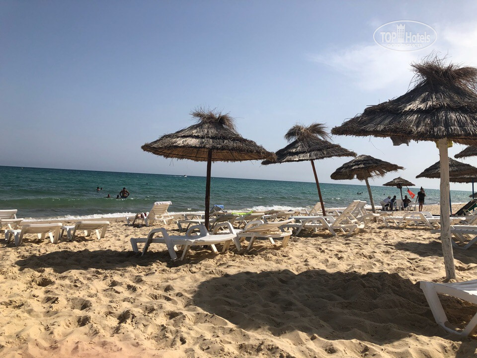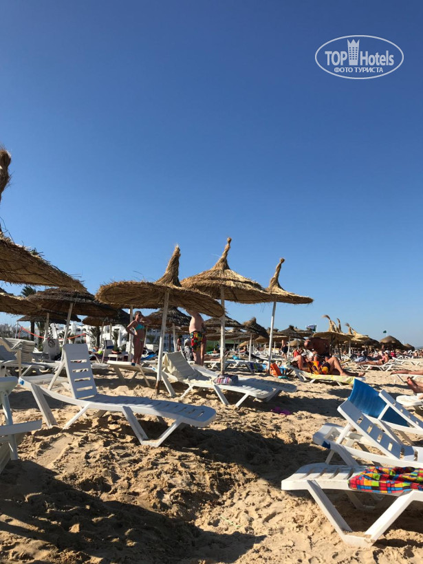 Пляж: вторая береговая линия, песчаный пляж в 200 м от отеля. Зонтики, лежаки и матрацы бесплатно, пляжные полотенца (залог 20 TND). Бар на пляже: 10.00 - 18.00